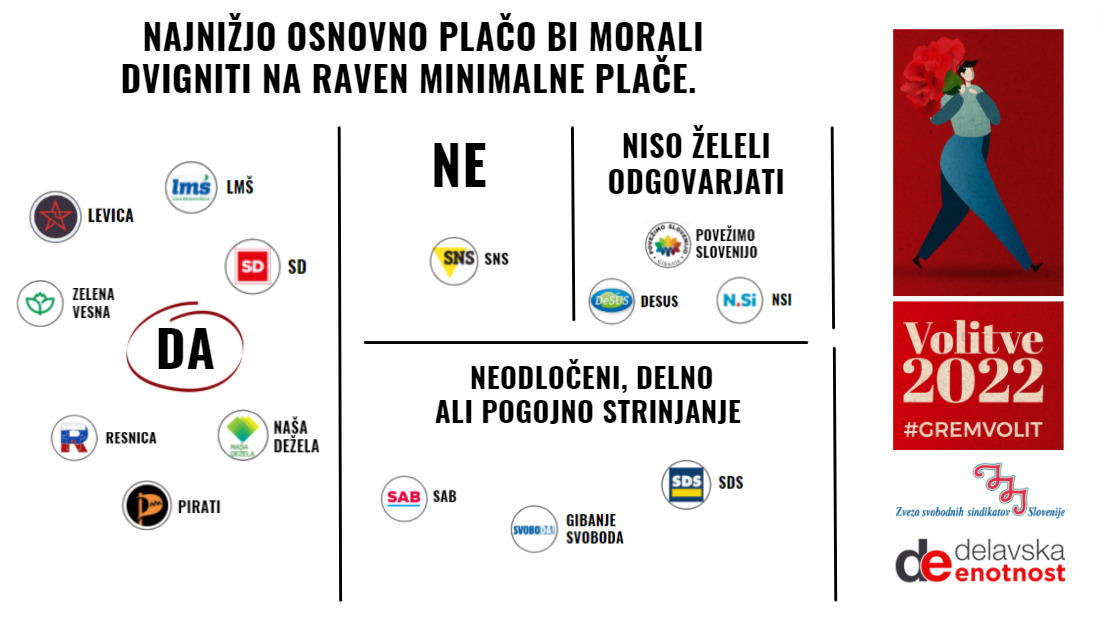 Političnim strankam v Sloveniji smo poslali več sindikalno, delavsko obarvanih predvolilnih vprašanj. Odgovore bomo (skupaj z drugimi vsebinami) objavili na teh straneh in v posebni tematski številki Delavske enotnosti, glasila ZSSS, ki bo posvečena letošnjim državnozborskim volitvam in bo izšla sredi aprila. Na podlagi odgovorov si boste lahko sami ustvarili mnenje, katera stranka najbolj zasleduje delavske in sindikalne interese.