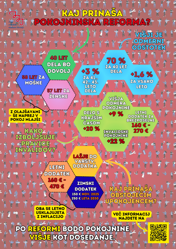 Omenjene spremembe smo podprli tudi na ZSSS. Predsedstvo ZSSS je 1. aprila letos z večino glasov glasovalo ZA podpis dogovora o pokojninski reformi, zato ga je nekdanja predsednica ZSSS Lidija Jerkič 2. aprila javno podpisala skupaj s predsedniki šestih sindikalnih konfederacij, delodajalskih organizacij in ministrov. Prav tako se je ZSSS, vključno s šestimi reprezentativnimi sindikalnimi centralami od sedmih, članicami ekonomsko-socialnega sveta, izrekla PROTI morebitnemu referendumu o pokojninski reformi oziroma zbiranju podpisov zanj, ki se je sicer začelo 8. oktobra.