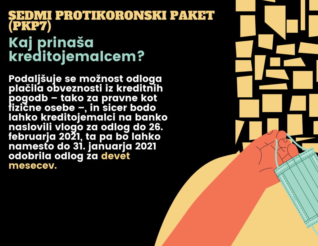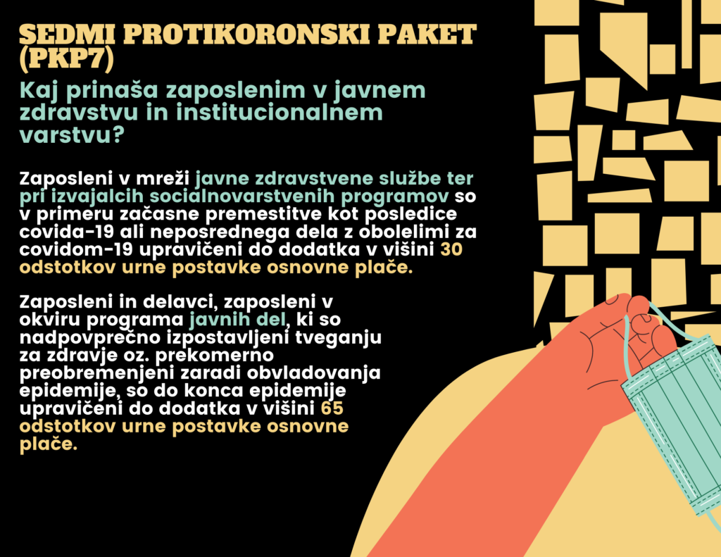 Državni zbor je torek sprejel že sedmi protikoronski paket (PKP7), katerega vrednost je ocenjena na približno 550 milijonov evrov. Tudi tokrat pa ta ni bil usklajen s sindikati. Do samega sprejetja zakona ni bilo povsem jasno, kakšna bo njegova končna oblika. Še na dan glasovanja so bili sprejeti dodatni amandmaji, ki so zakon še nekoliko spremenili. Zato tudi ta zakon vsebuje nekatere ne povsem domišljene rešitve.