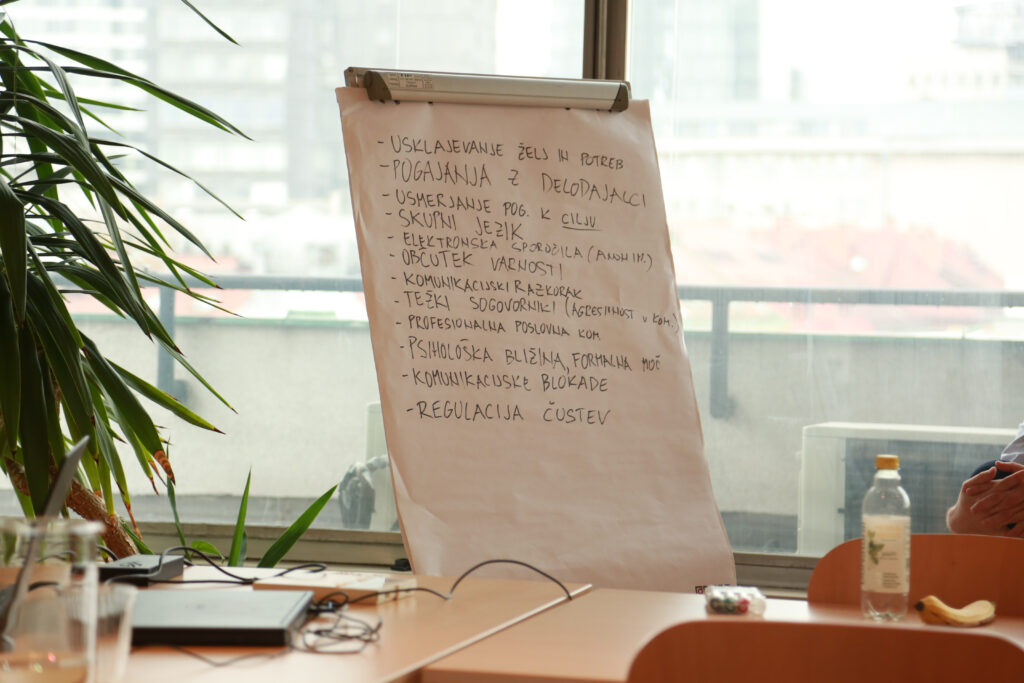 Usposabljanje namenjeno predsednikom sindikatov dejavnosti ter njihovim strokovnim sodelavcem ter strokovnim sodelavcem in vodstvu ZSSS, je predavatelj Timotej Strnad iz svetovalnega podjetja OK Consulting, začel s predstavitvijo osnovnih tehnik učinkovitega komuniciranja. Udeleženci so uvodoma predstavili v kakšnih situacijah se soočajo s težavami, predavatelj pa je njihove uvide komentiral in jih ovrednotil znotraj psihološkega in odnosnega polja. Posebej se je posvetil relacijskim mrežam med verbalno in neverbalno komunikacijo ter izpraševanju oblik izražanja, pri čemer se je kot težavno izpostavilo predvsem vprašanje kako povedati kar misliš in kako si razumljen oz. kako vzpostavljati različne meje pri čustvenih izbruhih sogovornikov.