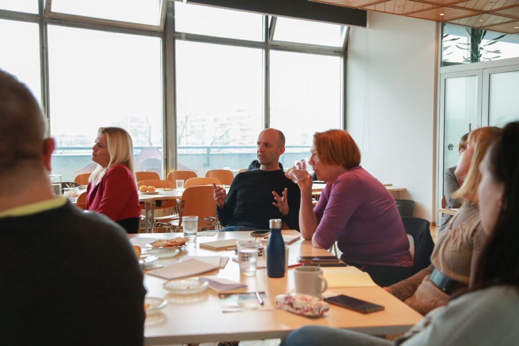 Razprava se je dotaknila tudi vprašanja profesionalne poslovne komunikacije ter razmerja med psihološko bližino in formalno močjo v delovnih okoljih. Udeleženci so prepoznavali, da se blokade v komunikaciji pogosto pojavijo prav tam, kjer se prepletajo čustva, nejasne meje in različni interesi. Predavatelj je zato poudaril pomen postopnega grajenja občutka varnosti v dialogu ter razvijanja veščin regulacije čustev, ki omogočajo, da pogovor tudi v napetih okoliščinah ostane usmerjen k rešitvam in ne k osebnemu konfliktu.