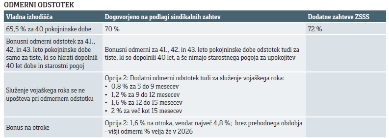 Načeloma ostaja za upokojitev dovolj 40 let delovne dobe, a ne nujno za vse. Treba je poznati tudi podrobnosti, ki jih predstavljamo v tabelah; v njih je tudi več o odmernem odstotku, ki se počasi zvišuje, in referenčnem obdobju, ki se spreminja.